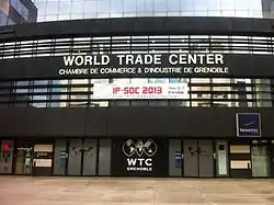 The World Trade Center of Grenoble (WTC G) is one of the 12 World Trade Centers in France[6] and one of 330 WTCs in the world.[7] It is located in the heart of the Europole district of Grenoble. It is certified by the World Trade Centers Association (WTCA) since 1988.[8] "The Silver Certification" has been given since 2008 corresponding to the new certification expectancies.