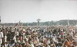 The final Mass of the event was celebrated by John Paul II at the Longchamp Racecourse, presenting 1,100,000[4]/ 1,200,000[5] and from the Czech Republic to Paris, 2000 pilgrims arrived.[6] The pope also turned to non-Catholics seeking answers on the faith.[7]