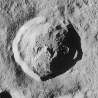 Wright is a lunar impact crater that is located near the western limb of the Moon. It lies on the irregular plain between the Montes Cordillera and Montes Rook, two ring-shaped mountain ranges that surround the Mare Orientale. Just to the southeast of the crater is the slightly larger crater Shaler. To the north of Wright is the crater Pettit.