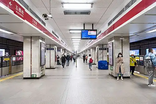 Wukesong Station (Chinese: 五棵松站; pinyin: Wǔkēsōng Zhàn) is a station on Line 1 of the Beijing Subway.[1] Its northeast exit (B1) exits into the Huaxi Live entertainment complex.