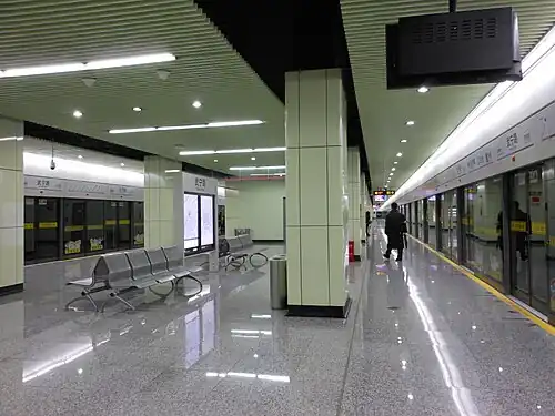 Wuning Road (simplified Chinese: 武宁路; traditional Chinese: 武寧路; pinyin: Wǔníng Lù) is an interchange station on Line 13 and Line 14 on the Shanghai Metro. Line 13 opened on 28 December 2014.[1] It became an interchange station with commencement of operations on line 14 on 30 December 2021.