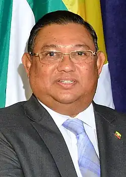Wunna Maung Lwin (Burmese: ဝဏ္ဏမောင်လွင်; born 30 May 1952,[3]) is a Burmese politician and a member of State Administration Council.[4] He was a Minister of Foreign Affairs under Commander-in-Chief of Defence Services Min Aung Hlaing after the 2021 Myanmar coup d'état.[5][6] He previously served as the Minister of Foreign Affairs from March 2011 to March 2016. He is a retired colonel in the Myanmar Army.
