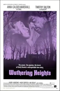 Wuthering Heights is a 1970 British[1] period romantic drama film directed by Robert Fuest, based on the 1847 Emily Brontë novel of the same name. It stars Anna Calder-Marshall as Cathy and Timothy Dalton as Heathcliff, with supporting roles played by Harry Andrews, Pamela Brown, Hugh Griffith, Ian Ogilvy, and Judy Cornwell.
