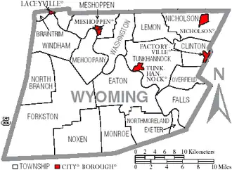 - ^ "2020 CENSUS - SCHOOL DISTRICT REFERENCE MAP: Wyoming County, PA" (PDF). U.S. Census Bureau. Retrieved July 24, 2024. - Text list