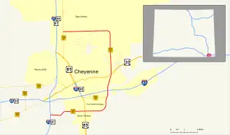 Wyoming Highway 212 (WYO 212) is a 14-mile (23 km) state highway in Wyoming. It is locally known as Four Mile Road from Wyoming Highway 219 to East Four Mile Road intersection at the curve, and College Drive from US 85/I-25 BUS. SR 212 acts like a bypass of Cheyenne, but in some portions it sneaks into the city limits. The portions that the bypass enters the city limits are between the railroad tracks and Ranchettes, and the northern terminus. SR 212 is signed north–south.