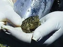 - ^ a b c Taylor, Sharon K.; Williams, Elizabeth S.; Thorne, E. Tom; Mills, Ken W.; Withers, David I.; Pier, A. C. (1999). "Causes of mortality of the Wyoming toad". Journal of Wildlife Diseases. 35 (1): 49–57. doi:10.7589/0090-3558-35.1.49. PMID 10073345. S2CID 42916999.