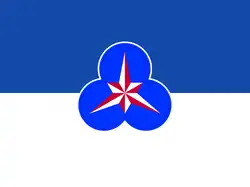 XXXVI Corps was activated on 15 July 1944 at Fort Riley, Kansas, under the command of Major General Jonathan W. Anderson and was assigned to the Fourth Army.[1] The shoulder patch was approved on 17 October 1944. A blue trefoil with a six-pointed red and white design indicated the corps' numerical designation. When stations and units assigned to the Second Army located west of the Mississippi River were transferred to the control of the Fourth Army effective 18 September 1944, the XXXVI Corps assumed control of corps-level troop units at Camps Howze and Maxey, Texas, and Camp Robinson, Arkansas. On 6 October 1944, the units at Camp Robinson were relieved from assignment to the XXXVI Corps. The Corps later assumed command of units at Camp Chaffee, Arkansas, and Camp Gruber, Oklahoma.[2] On 5 January 1945, the headquarters of Fourth Army and the Special Troops detachments of Camps Chaffee, Gruber, and Robinson prepared to assume administration of the corps-type units located there, from which the XXXVI Corps was relieved responsibility on 10 January 1945 for an anticipated move to Camp Cooke, California. Instead, the XXXVI Corps received changed orders, recalled its units which had already moved to the West Coast, and moved to Camp Gruber, Oklahoma on 16 January 1945. The corps was relieved of both assignment to Fourth Army and responsibility to units at Camp Gruber at midnight on 23 June 1945 and began movement to Camp Callan, California.[3] It was inactivated there on 25 September 1945.[1]