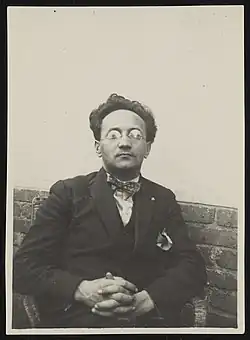 Shawinsky was born March 25, 1904, in Basel, the second child of Benjamin Schawinsky and Regina Bielawska, both of Polish-Jewish descent. Schawinsky attended school in Basel from 1910 to 1914, and then high school in Zurich from 1915 to 1921.[1] He apprenticed at the architecture office of Theodor Merill in Cologne until 1923. After visiting the Berlin School of Applied Arts for a short time in 1923, Schawinsky enrolled in the Bauhaus in Weimar in 1924. Paul Klee, Wassily Kandinsky, Adolf Meyer and László Moholy-Nagy were among his teachers.[1] In the stage department led by Oskar Schlemmer Schawinsky developed skits and pantomimes, and created his first stage work.[1]