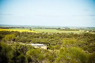 The most notable building in the area is a large water tank, begun in 1923 and completed in 1927, which was originally intended to supply water to Dalwallinu but because of problems with pumping water over the hills it ended up supplying local farms instead.[2][3]