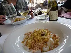 Xató (Catalan pronunciation: [ʃəˈto]) is a typical Catalan dish. It is a sauce made with almonds, hazelnuts, breadcrumbs, vinegar, garlic, olive oil, salt, and the nyora pepper. The sauce is often served with an endive salad prepared with anchovy, tuna and dried and salted cod (bacallà).