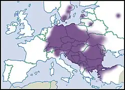 This land snail occurs in European countries[3] including Hungary, Bulgaria, Czech Republic, Italy, Poland, Slovakia, Ukraine,[4] Canada (Bethany, Ontario, Canada first detected in 1969 and 1972;[5] at least 23 occurrences in southern Ontario as of 2015[6]), United States of America (Wayne County, Michigan Detected in 2002 - B. Sullivan) and others.