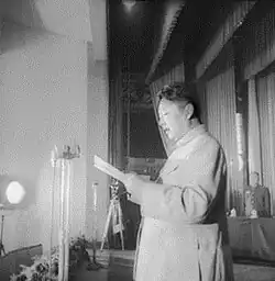 In February 1943, he was designated Secretary of the CCP Suide Prefectural Committee and Political Commissar of the Suimi Garrison Area and the Independent First Brigade.[18] During this period, he advocated for the model worker Liu Yuhou and furthered the Great Production Campaign.[19] He also endeavored to rectify communist deviations throughout the Yan'an Rectification Movement.[20]