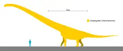 Xinjiangtitan (Chinese: 新疆巨龙; pinyin: Xīnjiāngjùlóng) is an extinct genus of mamenchisaurid sauropod that lived during the Middle Jurassic of what is now Xinjiang, northwestern China. Its type and only species is Xinjiangtitan shanshanesis (Chinese: 鄯善新疆巨龙; pinyin: Shànshàn Xīnjiāngjùlóng), known from a single incomplete skeleton recovered from the Qiketai Formation. The holotype preserves one of the most complete vertebral columns of any sauropod found in Asia, and has the longest complete neck known for any animal.