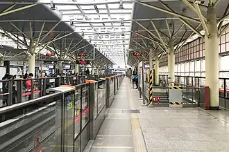 Xizhimen station[1] (simplified Chinese: 西直门站; traditional Chinese: 西直門站; pinyin: Xīzhímén zhàn) is an interchange station for Line 2, Line 4 and Line 13 of the Beijing Subway. Just outside this station is Beijing North railway station.[2] Line 2 opened on September 20, 1984; Line 13 opened on January 28, 2003; and Line 4 opened on September 28, 2009. With the addition of Line 13 and Line 4, Xizhi Men Station became the second 3-way transfer station (the first was Dongzhimen Station, being the intersection of Line 2, Line 13, and Airport Express). With a peak daily ridership of over 770,000 passengers,[3] Xizhi Men Station is also one of the most crowded stations of the whole Beijing Subway system. It sees over 170,000 transfers per day between the 3 lines serving the station.[4]