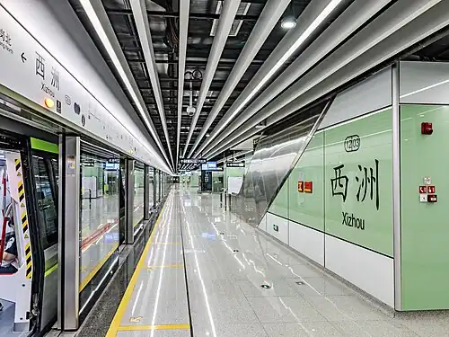 Xizhou station (Chinese: 西洲站; pinyin: Xīzhōu Zhàn; Cantonese Yale: Sāijāu Jaahm) is an interchange station between Line 12 and Line 13 of the Guangzhou Metro. It is located south of the intersection of Chashan Avenue and Guanghai Road, in the Baiyun District of Guangzhou. The station is opened on 29 June 2025,[1] and Line 13 is expected to be extended to this station by 2027.