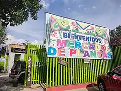 The Xochimilco Plant Market, also called the Cuemanco Market, sits on an extension of 13 hectares of park land near the main entrance on Canal Nacional, where it crosses the Anillo Períferico Oriente.[4][17] This live plant market and warehouse is the largest of its type in Latin America.[17][18] It is the main moneymaking operation of the ecological park, renting out 1,700 stalls to sellers of live plants and related items, much the same way as Mexican traditional markets. Most of the sellers are producers.[14][18] However, only about 600 stalls are active selling points, the rest are empty or used for storage.[14]