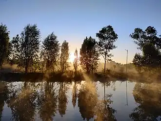 One drawback of the park is its lack of mature shade trees, as they were planted when the park was founded in the 1990s.[6] The park's ecology remains in danger from pollution associated with urban sprawl. The water is contaminated by sewage and household garbage, damaging flora, driving away wildlife and risking the health of surrounding residents.[3]