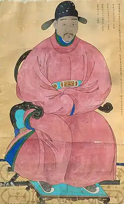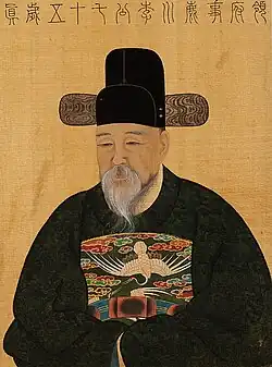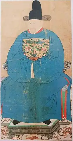 In 1466, the position was officially put in statutory form with the finalization of the Kyŏngguk taejŏn.[6][7] The Yeongjuijeong title was generally conferred on a senior minister who had previously served as Chwaŭijŏng (Left State Councilor),[8] a post immediately below that of Yŏngŭijŏng, but higher than that of Uŭijŏng (Right State Councillor).[9] The three councilors were collectively known as the "Chŏngsŭng" (정승; 政丞),[10] or "Samŭijŏng" (삼의정; 三議政; lit. Three High Councillors).[3]