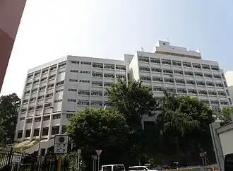 The Y.W.C.A. Hioe Tjo Yoeng College (HTYC) is at 6 Sheung Wo Street in Ho Man Tin, a residential area in Kowloon, Hong Kong.[1] Lady Black, the wife of Hong Kong colonial administrator Robert Black, put down the cornerstone signifying the start of construction on 15 October 1963.[2] Lady Black stated at the ceremony, "As Patron of the Hongkong Chinese Women's Club, I am delighted to be here today to lay the foundation stone for the school, for which the members of the Club have worked so hard to show, in a positive way, their willingness to help the less fortunate people in this Colony. This school, when it is completed, will be a symbol of cooperation between all members of the varied community of Hongkong."[2] When construction began, the school was estimated to cost $500,000 to build.[2] After construction was completed, the total construction cost was $2.5 million.[3] Hioe Tjo Yoeng and his wife donated $500,000 to construct the school and $20,000 for school supplies, while the government covered 80% of the construction expenses.[3]