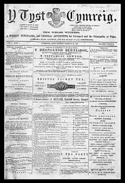 Y Tyst Cymreig ("The Welsh-language Witness") was a weekly Welsh language newspaper. It contained local, national, and foreign news. Although in 1871 it merged with Y Dydd ("The Day") to form Tyst a'r Dydd ("Witness and the Day") the arrangement did not last, and the Tyst a'r Dydd was moved to another publisher in Merthyr Tydfil. Associated titles are Y Dydd (1868–1870, 1872–1954) and Y Tyst a'r Dydd (1871–1891)[1]