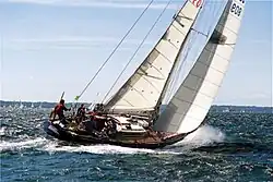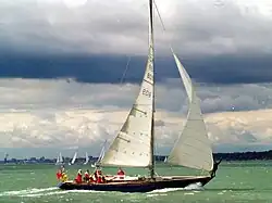 A Laurent-Giles designed Bermudan yawl, built by Camper and Nicholsons in 1952 with yard number 784, she is 58 ft length overall with an 8.5' draft.[1] Now renamed Lutine of Helford. In 2014 Lutine I was listed for sale with an asking price of £339,000; the listing describes her as having been found "derelict" in 1999 and having undergone a complete rebuild before relaunch in 2001. She was evidently restored to excellent condition, and sold within a few months.[2] A model is displayed in the Lloyd's Register of Shipping offices in Southampton having been loaned by the LLYC Commodore.