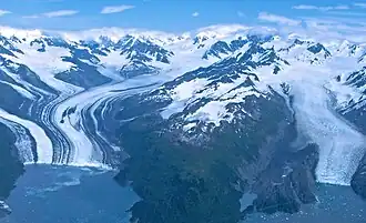Yale Glacier is a 20 mi (32 km) long glacier in the U.S. state of Alaska. It begins at the saddle between Mount Witherspoon and Mount Einstein, and trends southwest to Yale Arm of College Fjord, 47 miles (76 km) west of Valdez. It was named for Yale University by members of the 1899 Harriman Alaska Expedition.[1]