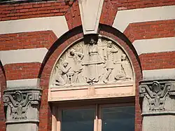 The Yale Union Laundry Building, also known as the Yale Laundry Building, the City Linen Supply Co. Building, Perfect Fit Manufacturing and simply Yale Union (YU), in southeast Portland, Oregon, is a two-story commercial structure listed on the National Register of Historic Places. Built largely of brick in 1908, and embellished with Italian Revival and Egyptian Revival decorations, it was added to the register in 2007.[2] Two-story additions in 1927 and 1929 changed the original building into an L-shaped structure that shares a party wall with a building to the east.[1]