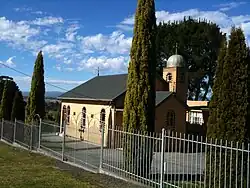 In 1950 a number of Orthodox Serbs came to live in Yallourn and soon wished to establish a Serbian Orthodox Church. On 8 June 1952 the Serbs of Yallourn and surrounding towns convened a general meeting at which the decision was made to establish a church and parish. The following year, Father Theodore Demjanjuk, a Russian by background, was appointed as the first parish priest, and services were initially held in the Anglican church. In 1957 land was obtained from the SECV for the building of the new church on North Road. Consequently, the church hall was built and consecrated in 1975 by Bishop Dimitrije. It has since been widened so that it can hold about 250 people. After Father Theodore, numerous priests served in the parish, while currently the parish priest is Father Milan Milutinovic who holds monthly services. It is the only Serbian Orthodox church in the region.[18]