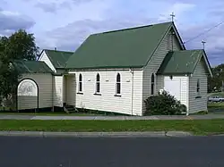 St.James's was built on "the hill", on a site in Reserve Street, and was dedicated on 17 November 1927.[16] When the little town of Morwell Bridge had to go because of the expanding Yallourn coal mine, the Church of England building was shifted to Brown Coal Mine to be used as a hall. On the eve of its removal it was set alight and required considerable repair. It served the township for a time and was later removed altogether. The first clergyman was the Reverend Vizard who was sent from Walhalla to the Brown Coal Mine in 1920.