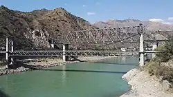 The Yalong has its source in the Bayan Har Mountains on the Tibet–Qinghai Plateau in Chindu County, Yushu, Qinghai, where it is known as the Za Qu (Chinese: 扎曲).[4] Flowing southeasterly, the Yalong gradually turns south at Garzê and travels between the Shaluli Mountains to the west and the Daxue Mountains to the east.[5] The Yalong River channel runs through a deep gorge for much of its length south of Garzê. The southern Sichuan-Tibet Highway crosses the Yalong at Yajiang in the middle of the river's course. In Liangshan Prefecture, the river wraps 150 km (93 mi) around the Jinping Mountains creating the Jinping Bend.[5] Here, water from the Yalong River has been diverted under the mountains as part of the Jinping-II Dam hydroelectric project. The Yalong meets the main stem of the Yangtze (Jinsha) River in Panzhihua, Sichuan.[6]