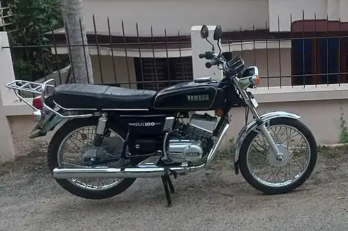 The Yamaha RX 100 was a two-stroke motorcycle made by Yamaha from 1985 to 1996 with technical collaboration and distributed in India by the Escorts Group. At the initial stage, Yamaha Japan was exporting all bikes from Japan to India. After 1990, Escorts started production in India, with some parts being imported from Japan.