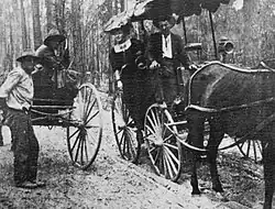 By the end of 1900, the village had a population, reported to vary between 150 and 200 people, and already had three stores, a post office, butcher's and baker's' shop, a news and mining agency, and a bootmaker's shop.[12] Later there was a school, a hotel called the Federal Hotel,[13][14] and an establishment offering billiards and bagatelle.[15] Land was set aside for a police station,[7] but there never would be any police stationed there.[16]
