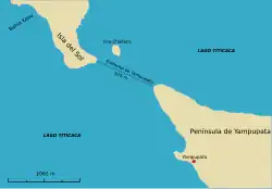 Yampupata is a Bolivian peninsula of Lake Titicaca situated in the north-western part of the Copacabana Peninsula in the La Paz Department, Manco Kapac Province, Copacabana Municipality, Zampaya Canton.[2] It is located near the islands Isla de la Luna and Isla del Sol, forming the Strait of Yampupata.