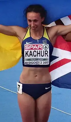 Yana Kachur (Ukrainian: Яна Качур; born 13 January 1997) is a Ukrainian sprinter.[2] She represented her country at the 2017 World Championships narrowly missing the semifinals. Additionally, she won two medals at the 2017 European U23 Championships.
