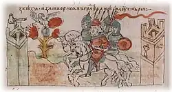 Yaropolk I Sviatoslavich (also translitered as Iaropolk Svyatoslavich; Old East Slavic: Ꙗрополкъ Свѧтославичъ;[a][1] 952 – 11 June 978) was Prince of Kiev from 972 to 978.[2] He was the oldest son of Sviatoslav I. Some modern sources suggest that his mother was Malusha, who was a steward in the household of his grandmother, Olga of Kiev.[3][4] However, primary chronicles such as the Primary Chronicle do not name his mother, and this identification remains unconfirmed by early sources.[5][6]