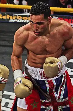 Yassine El Maachi (born 19 September 1979, Rabat, Morocco ), also known as "The Showman", is Moroccan-British professional boxer. He is the former International Master champion. He won the Prizefighter series Welterweight in June 2011. After his victory, he became the first boxer ever to beat two world champions on the same night, whom are Colin Lynes and Junior Witter. He is also known by his flashy slick style, which made him the most avoided boxer in Great Britain. He is fluent in four languages: Arabic, Dutch, English and Italian. He became British citizen in 2012