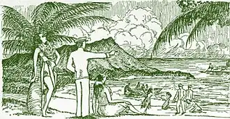 During the two years at sea then required of a naval cadet that had passed his academic studies before commissioning as an ensign, Stirling was first assigned to the protected cruiser USS San Francisco (C-5) that he and four other cadets joined in the Sandwich Islands, (as the Territory of Hawaii was also known) in July 1892. Seeing these exotic islands that he had heard about in his father's stories, despite the tropical setting Stirling was somewhat disappointed to find no "truly Hawaiian villages" and that "Hawaiian life even then had merged into Western civilization or Oriental."[20] Observing the miscegenation of whites with the indigenous Hawaiians during the few weeks his ship was at Hawaii, he later wrote in his memoirs, "I found them most wholesome companions, although I had the feeling that I must be careful not to fall in love. It seemed strange to see a dignified white official surrounded by children with skins as dark as a mulatto."[20] Stirling's nineteenth century ethnic and cultural beliefs aside, he noted the geopolitical undercurrents of the importance of Hawaii to the United States, Great Britain and Japan as each maintained a naval presence. "All three nations were watching each other to be sure no one would obtain advantage over another and become too powerful in Court circles. Hawaii was known to be an important strategical location with great commercial prospects. The United States would not have permitted any other nation to seize the Islands, yet at that time, the Administration in Washington, under President Cleveland, did not feel itself strong enough to take them for this country. Our method, therefore, was one of watchful waiting and maintaining friendly relations with the Hawaiian Queen (Liliuokalani) and her government."[21] Japan's long-standing ambitions in the Pacific were driving a naval buildup for the First Sino-Japanese War two years later and eventually for war with the U.S., as Stirling would predict in articles and lectures in the 1930s and as others such as Homer Lea, had foretold as early as the first decade of the twentieth century.[21]