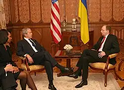Yatsenyuk as Minister of Foreign Affairs meeting with United States Secretary of State Condoleezza Rice