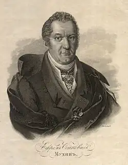 Yefrem Yosypovych Mukhin (Russian: Ефрем Осипович Мухин, Ukrainian: Єфрем Йосипович Мухін; 8 February [O.S. 28 January] 1766 – 12 February [O.S. 31 January] 1850) was a Russian physician, surgeon, anatomist, physiologist, hygienist. One of the founders of the anatomical and physiological direction in Russian medicine.[1] He is considered the founder of traumatology in Russia and Ukraine. Honourary Professor and Dean of the Faculty of Medicine of Imperial Moscow University, Active State Councillor.