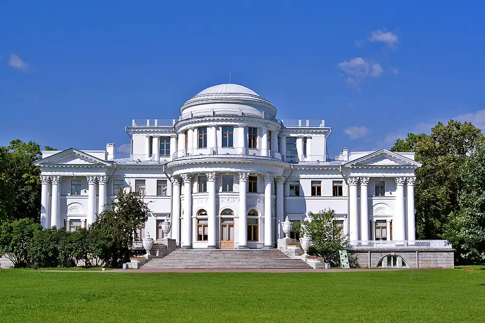 In 1817, the island was bought for 350,000 rubles by the Imperial Cabinet on behalf of the Russian Monarchy. The following year the palace grounds underwent a thorough redesigning and restructuring led by architect Carlo Rossi. The works lasted four years and included a vast English landscape garden with a system of canals, bridges and ponds, as well as grottoes and gazebos.[3]