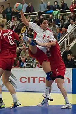 Yeliz Özel (born 6 March 1980, in Ankara)[1] is a Turkish retired handballer, who last played for İzmir Büyükşehir Bld. GSK and the Turkish national team. She is widely considered the best handball player ever from Turkey.