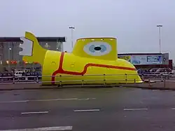 The Yellow Submarine in Liverpool is a large model representation of the submarine featured in the 1968 animated film Yellow Submarine, inspired by the 1966 song of the same name on The Beatles' album Revolver. It was built by a group of about 80 apprentices from Cammell Laird's shipyard, designed in part by Mr L Pinch, a draughtsman at the yard, for exhibition at the International Garden Festival in Liverpool in 1984.[1] The Submarine was in a garden themed around the Beatles, one of 60 such themed gardens, and was highly popular. The garden took the form of an apple-shaped labyrinth, containing symbolic references to the group, and included a bronze statue of John Lennon, which now stands at Liverpool John Lennon Airport.