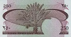250 fils | Brown | Dhow boat with Port of Aden in background | Date Palm tree | ||