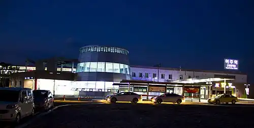 Yeoju station is the southern terminus of the Seoul Metropolitan Subway Gyeonggang Line. It is located at 80 Gyodongno, Gyo-dong, Yeoju, Gyeonggi, South Korea.