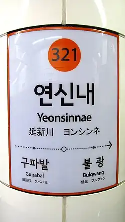 1. ^ a b c "연신내역" (in Korean). Doopedia. Retrieved 2016-09-24.