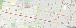 The railway started at Plaza Alberdi (the square at the Central Argentine Railway station) and ran west on Calle Santiago del Estero, turned right into Avenida Mitre and followed it until they turned left into Avenida Manuel Belgrano. Here it passed the depot and the workshops. It ran west to the Avenida Ejército del Norte, then turned south along Calle Córdoba (now Calle Don Bosco). On the Calle Aconquija (now Calle Luis Federico Nougués) it ran to the Avenida Mate de Luna, which it followed to the terminus Horco Molle at today's El Corte roundabout at the foot of the San Javier Hill.[1]