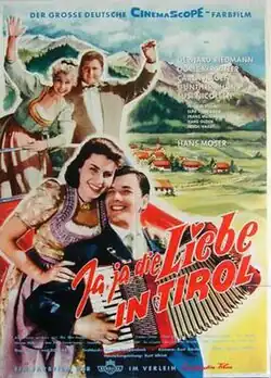Yes, Yes, Love in Tyrol (German: Ja, ja die Liebe in Tirol) is a 1955 West German musical comedy film directed by Géza von Bolváry and starring Gerhard Riedmann, Hans Moser, and Doris Kirchner. It is a loose reworking of the plot of the play Kohlhiesel's Daughters by Hanns Kräly.[1]