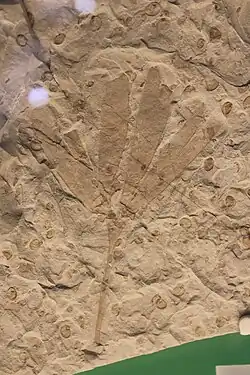 Yimaia is an extinct genus of Ginkgoalean tree, and the only member of the family Yimaiaceae. In botanical form classification, its a form taxon for ginkgoalean ovulate organs. Yimaia species are distinguished from other Ginkgoales by the presence of "Ovulate organs consisting of a peduncle and up to eight or nine terminal, sessile, contiguous and orthotropous (straight, upright and with a micropyle at apex) ovules." The ovules are associated with leaves of either Baiera or Ginkgoites leaf morphospecies.[1] Fossils have been found in Middle Jurassic deposits in China.
