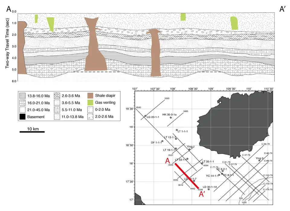 - ^ a b c Lei, Chao, et al. "The structure and formation of diapirs in the Yinggehai–Song Hong Basin, South China Sea." Marine and Petroleum Geology 28.5 (2011): 980-991.