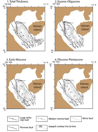 - ^ a b Sun, Zhen, et al. "Experimental evidence for the dynamics of the formation of the Yinggehai basin, NW South China Sea." Tectonophysics 372.1 (2003): 41-58.